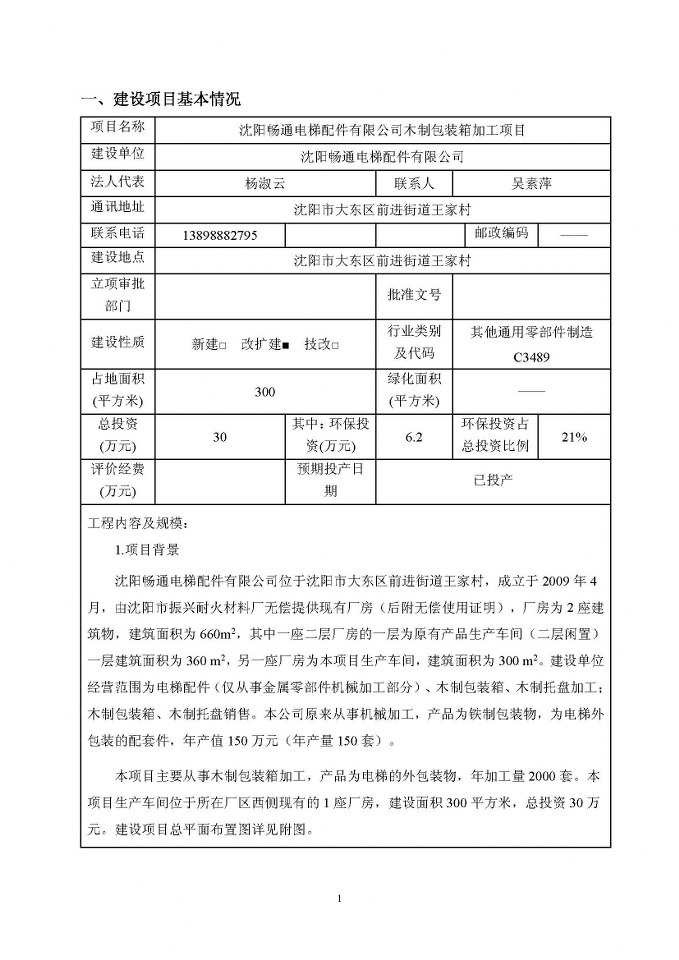 沈陽暢通電梯配件有限公司木制包裝箱加工項目
