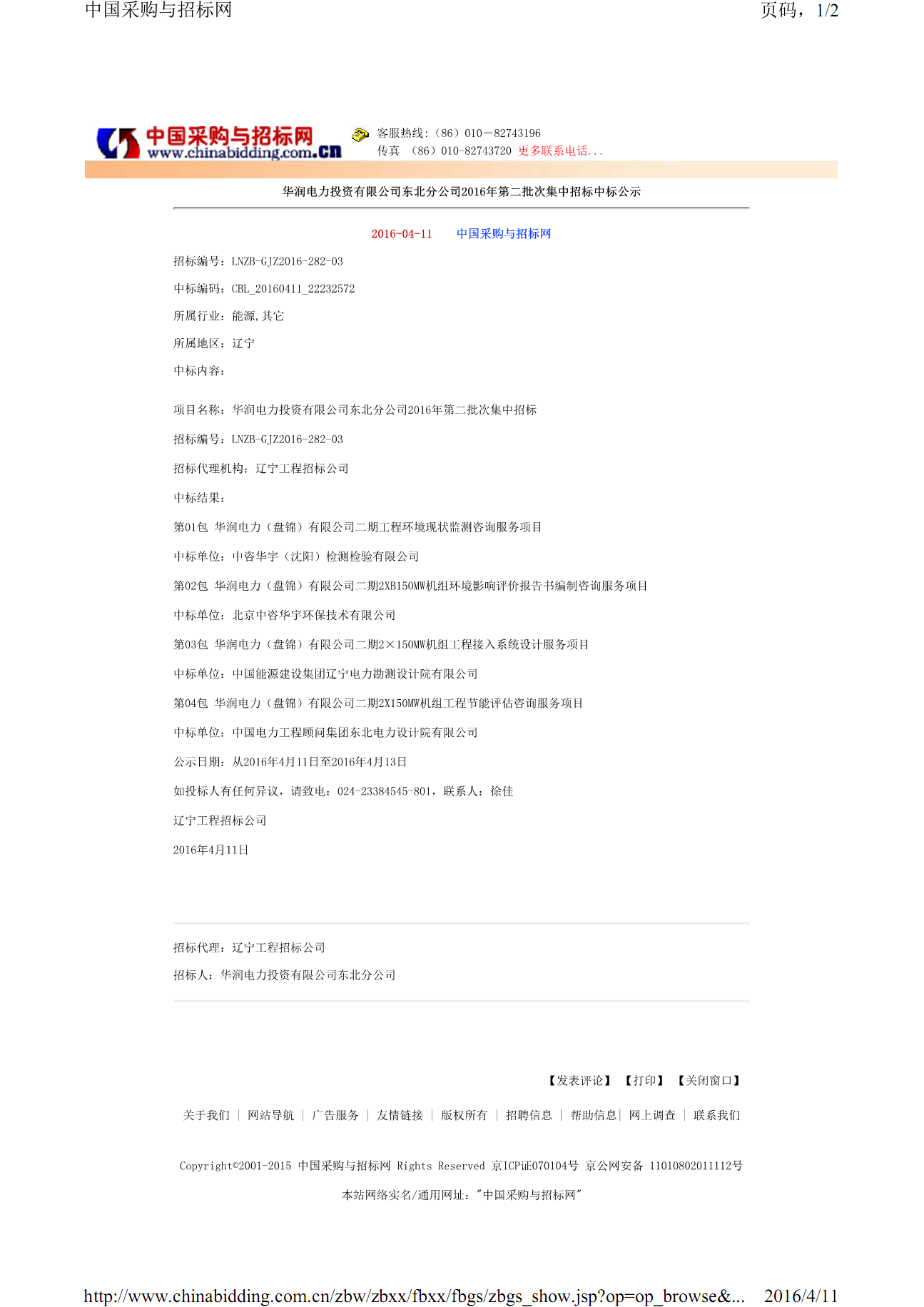 近日,在華潤電力投資有限公司東北分公司實施的“華潤電力(盤錦)有限公司二期XB150MW機組環(huán)境影響評價報告書編制咨詢服務(wù)項目及華潤電力(盤錦)有限公司二期工程環(huán)境現(xiàn)狀監(jiān)測咨詢服務(wù)項目”我們一舉中標(biāo)。